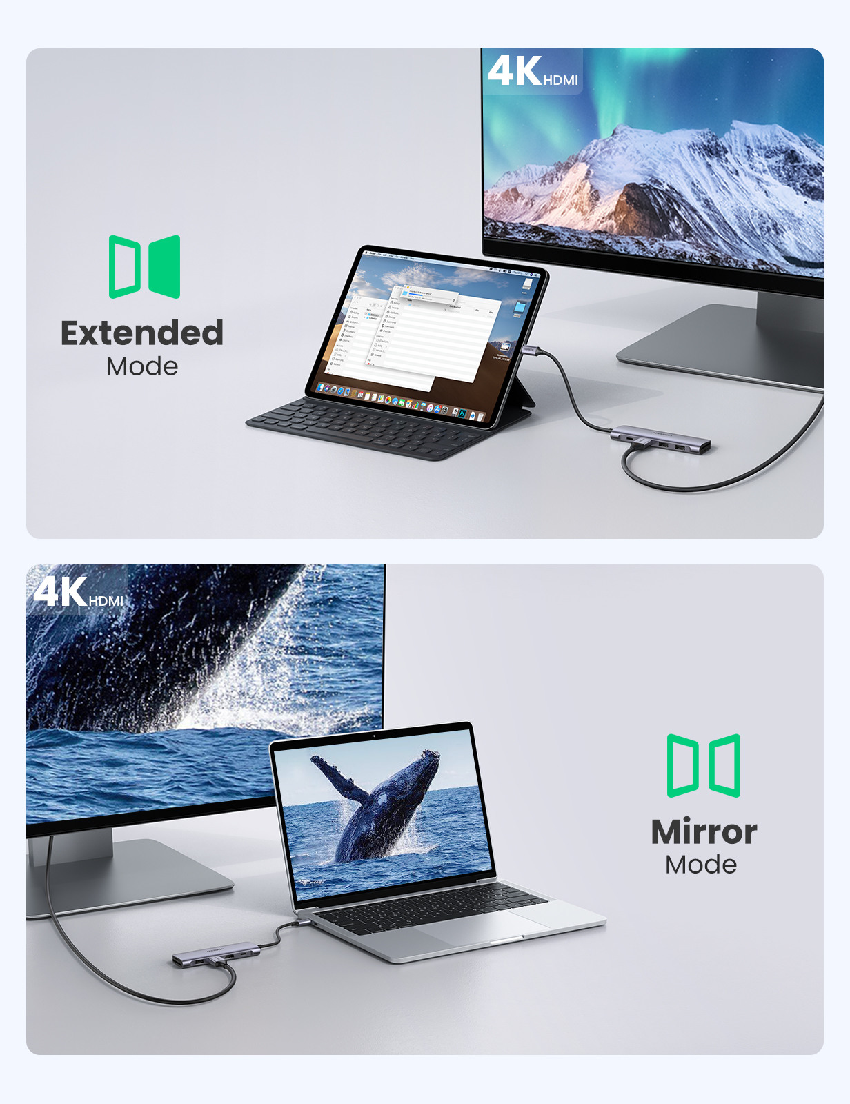 - 100W PD-Stromversorgung: Der UGREEN USB C Hub unterstützt das PD-3.0-Protokoll (Power Delivery), dass das schnelle Laden mehrerer Geräte mit 100W unterstützt. Als zuverlässiger Helfer bei Ihrer Arbeit bietet der USB C Adpter Hub genug Schutz gegen Kurzsch