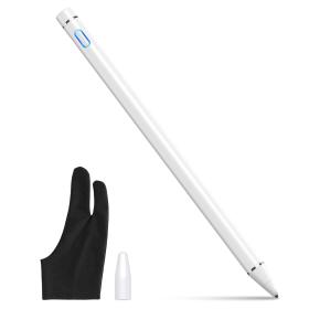 - Wird mit einer Schutzkappe für den Stift geliefert, um Ihre Stiftspitze sicher zu halten, wenn sie nicht verwendet wird. Enthält auch einen nicht leitenden Handschuh, mit dem Sie Ihre Hand auf Ihrem Gerät ablegen können, ohne den Touchscreen zu aktivieren