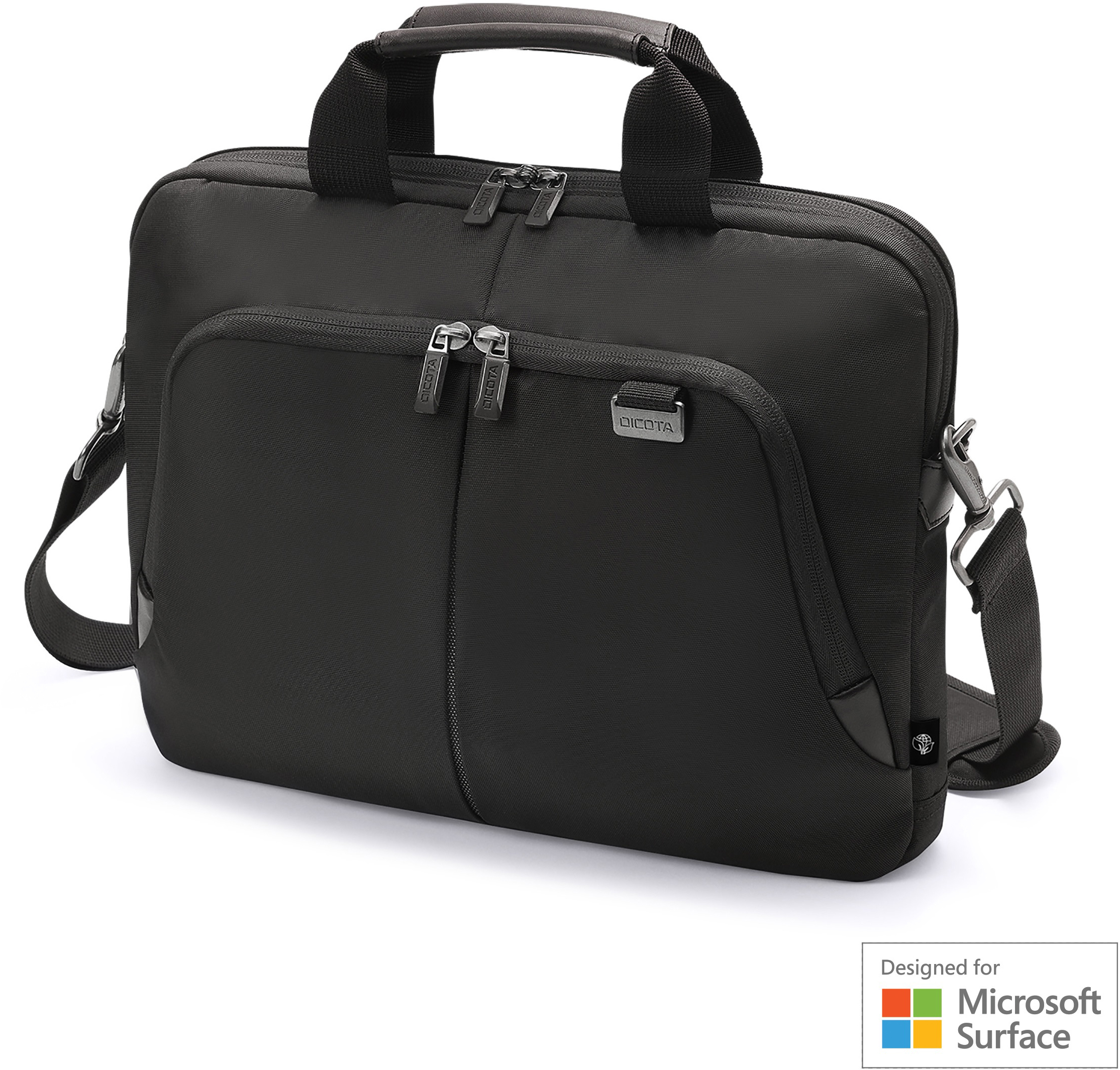 Die Tasche Slim Eco PRO begleitet Sie zuverlässig, wohin Sie auch gehen. Die Tasche erfüllt die höchsten Anforderungen an Qualität, Schutz und Funktionalität. Die gepolsterte fit-all Trennwand im Notebookfach legt sich passgenau um Ihr Microsoft Surface Gerät und fixiert Laptops in Grössen bis zu 15". Dank der perforierten und dadurch leichten Polsterung aus EVA-Schaumstoff ist Ihr Notebook optimal geschützt. Die Handgriffe aus hochwertigem Leder sorgen für einen komfortablen Transport im täglichen Gebrauch. Zusätzlich zum Notebookfach verfügt die Tasche über ein gepolstertes Fach für Tablets bis zu 10.5". Darüber hinaus bietet sie grosszügigen Stauraum für Dokumente an der Taschenrückseite. In der Vordertasche können Sie persönliches Zubehör und zusätzliche mobile Accessoires sicher verstauen. Das Trolley-Befestigungsband sorgt für perfekten Komfort auf Reisen mit zusätzlichem Gepäck. Damit ist die Tasche Slim Eco PRO die perfekte Tasche für alle, die viel unterwegs sind und mit einer umweltfreundlichen Tragelösung die sinnvolle Wiederverwendung von PET- Flaschen unterstützen möchten.