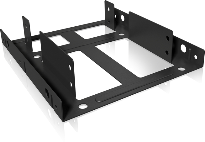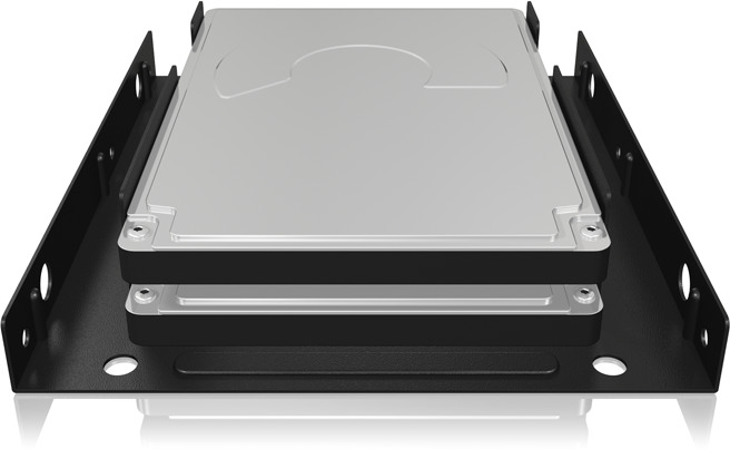 Wenn man für zuhause etwa zwei neue SSDs erstanden hat, aber man keine richtige Unterbringungsmöglichkeit mehr hat- dann könnte das IB-AC643 hilfreich sein. Der praktische Metalleinbaurahmen sorgt für die fachgerechte Verstauung von zwei HDDs oder SSDs des Formfaktors 2,5" und benötigt nur einen freien 3,5" Schacht. Eine der Hauptursachen für eine Lebenszeitverkürzung von Festplatten ist eine starke Wärmeaussetzung. Dagegen schützt dieser kompakte Einbaurahmen in zweifacher Weise: Er ist aus gut wärmeableitendem Vollmetall hergestellt und hat Montagelöcher für einen optionalen 80-mm-Lüfter an seiner Unterseite (im Lieferumfang nicht enthalten). Dank seiner kompakten Grösse kann der Einbaurahmen ebenfalls in kleinen Media Center PCs verbaut werden.