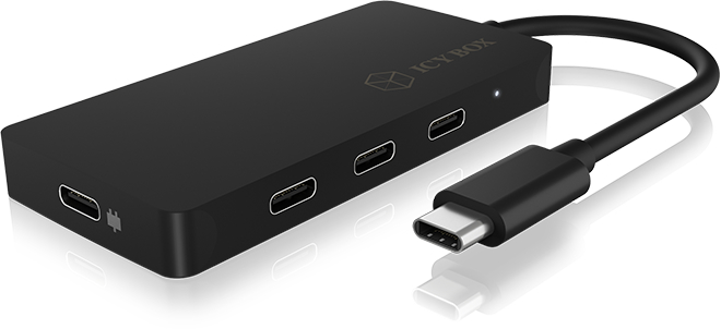 Der IB-HUB1429-CPD ist ein vierfach USB 3.1 (Gen 2) Hub, der einfach an einen USB Type-C™ Anschluss am Notebook oder Computer angeschlossen werden kann. Mit seinen drei Type-C™ Anschlüssen für Datenübertragung bietet der Hub eine hohe Performance beim Anschluss von mehreren Geräten. An der Seite befindet sich ein zusätzlicher Type-C™ Port mit Power Delivery Funktion, mit dem Sie Ihr Notebook per Type-C™ Netzteil aufladen können. Darüber hinaus erlaubt das integrierte USB Kabel das Anschliessen, ohne weitere Kabel mit sich umhertragen zu müssen.