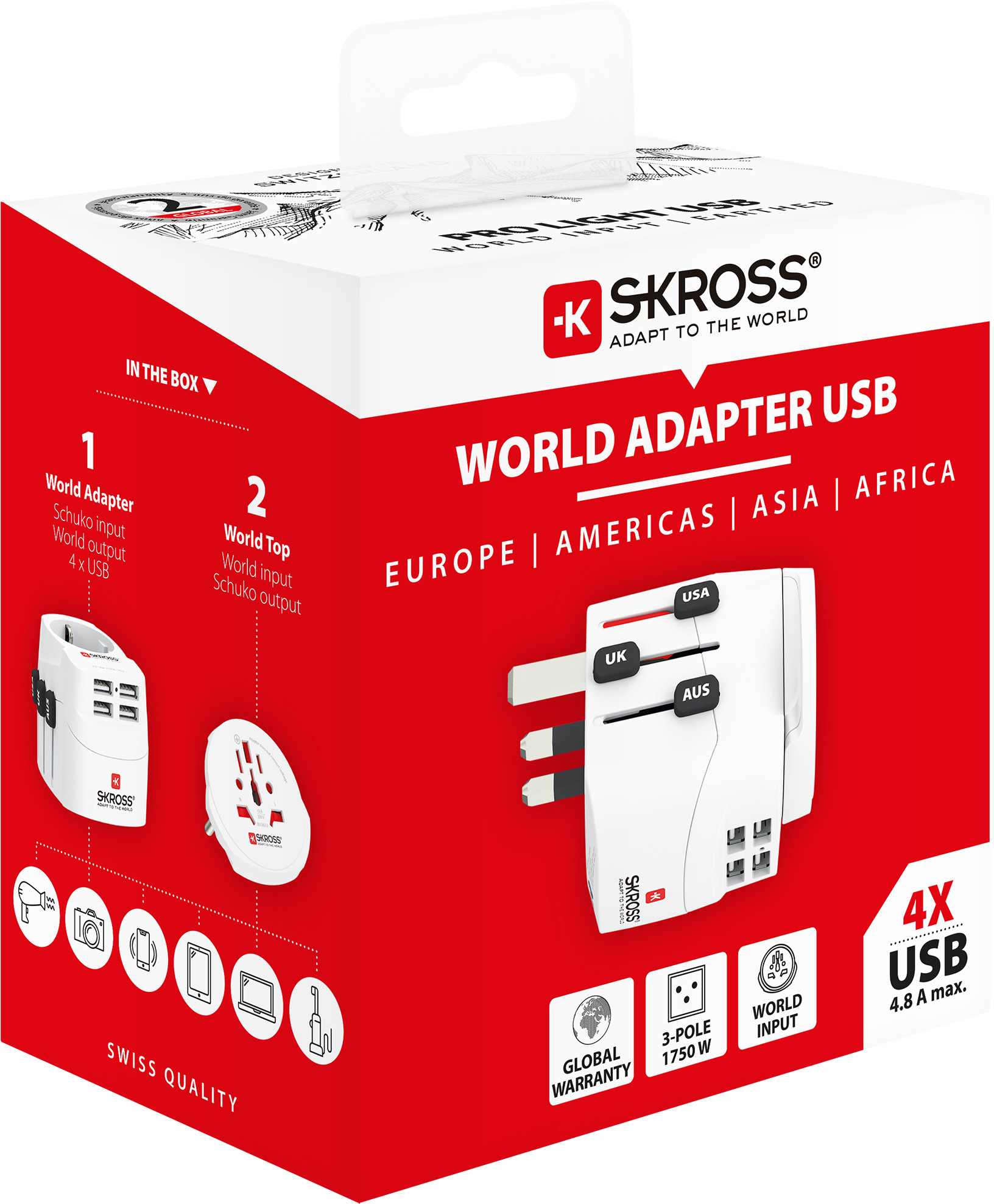 Der PRO Light USB (4xA) - World sorgt für einfachen und sicheren Anschluss 2- und 3-poliger Geräte aus aller Welt in über 100 Destinationen. Die verfügbare