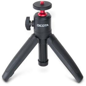 Das Webcam-Stativ ist im zusammengeklappten Zustand 147 mm hoch. Wenn Sie es auf diese Weise aufstellen, können Sie es als Tischstativ oder als kurzen Handgriff verwenden. Es ist mit einer ausfahrbaren Mittelsäule ausgestattet, die eine maximale Höhe von 245 mm ermöglicht. Dank des integrierten neig- und schwenkbaren Kugelkopfes ist es robust und flexibel.