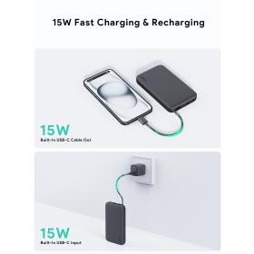 Ultra-schlankes Design: Mit einer Dicke von nur 17 mm ist diese ultradünne Powerbank außergewöhnlich tragbar und passt problemlos in Taschen, Beutel und sogar in die kleinsten Räume. Eingebautes nylongeflochtenes USB-C-Kabel:Dieses auf Langlebigkeit und Zuverlässigkeit ausgelegte, verwicklungsfreie Kabel stellt sicher, dass Sie immer eine Ladelösung zur Hand haben, ohne dass Sie zusätzliche Kabel benötigen.Hohe Kapazität: 10000 mAh, damit Ihre Geräte den ganzen Tag lang geladen bleiben