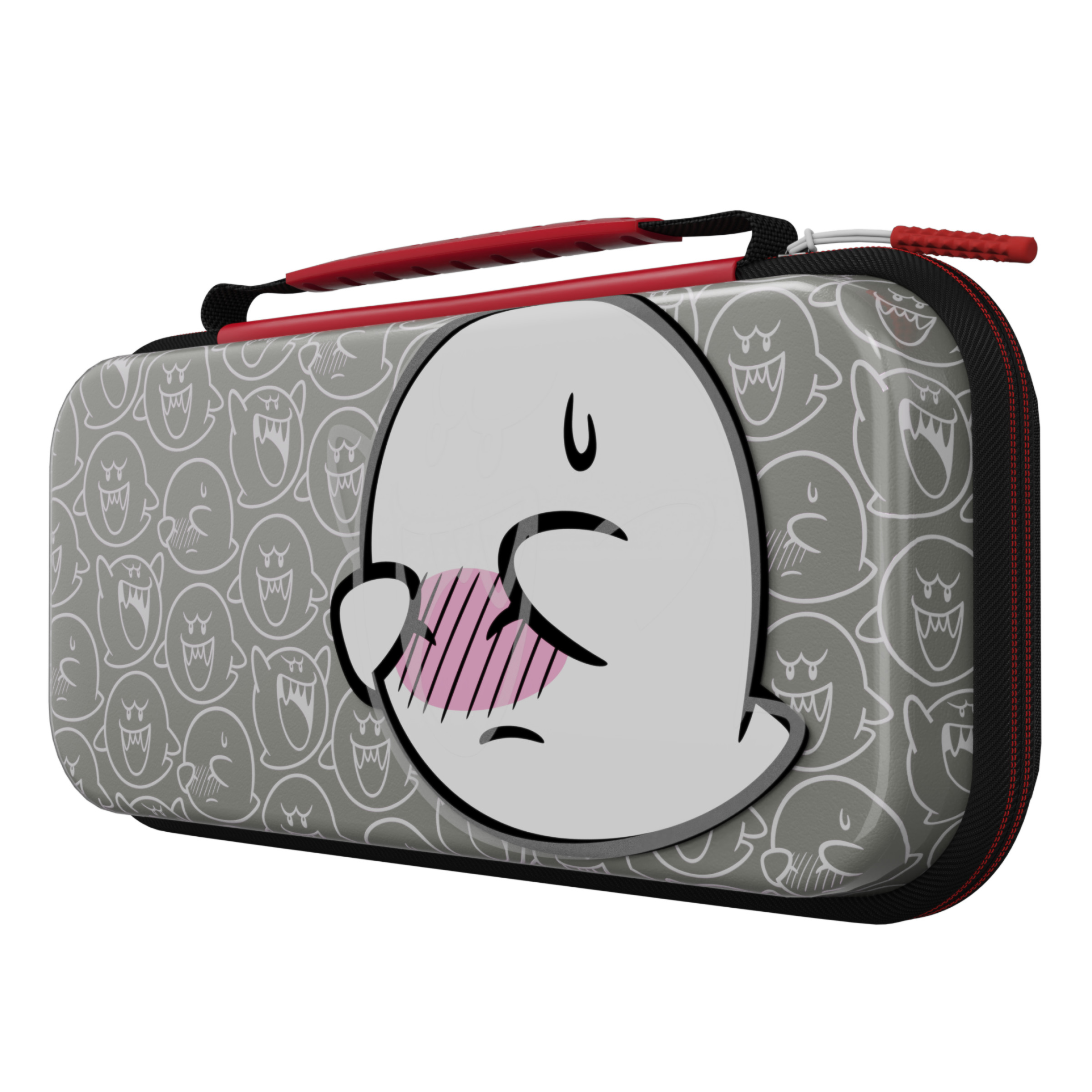Das Case bietet eine praktische Aufbewahrungsmöglichkeit für Zubehör in großen und kleinen Taschen. Sein einzigartiges Design leuchtet im Dunkeln und verleiht ihm eine besondere Optik. Ein integrierter Ständer unterstützt das Gerät und ermöglicht bequemes Spielen. Das Case ist offiziell von Nintendo lizenziert und daher hochwertig verarbeitet. Es ist perfekt für Reisen geeignet, dank des bequemen Tragegriffs und bietet gleichzeitig eine sichere Aufbewahrung und Schutz für dein Nintendo-Gerät.