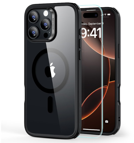 Kompatibilität: nur für iPhone 16 Pro; Im Lieferumfang enthalten: 1 durchscheinendes, mattes Gehäuse, 1 Displayschutzfolie aus gehärtetem Glas, 2 Sätze austauschbarer Easy-Press-Tasten und 1 Ausrichtungsrahmen
