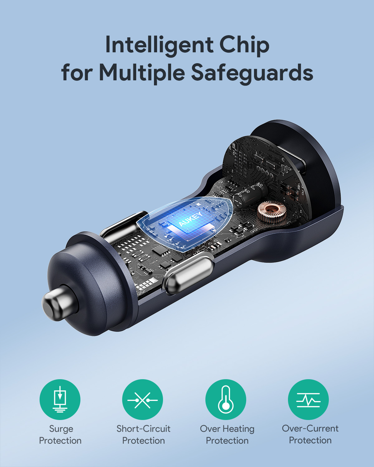 Dieses Autoladegerät unterstützt eine maximale Leistung von 65W, wodurch Ihre Geräte mit einer schnellen und effizienten Ladeerfahrung geladen werden.