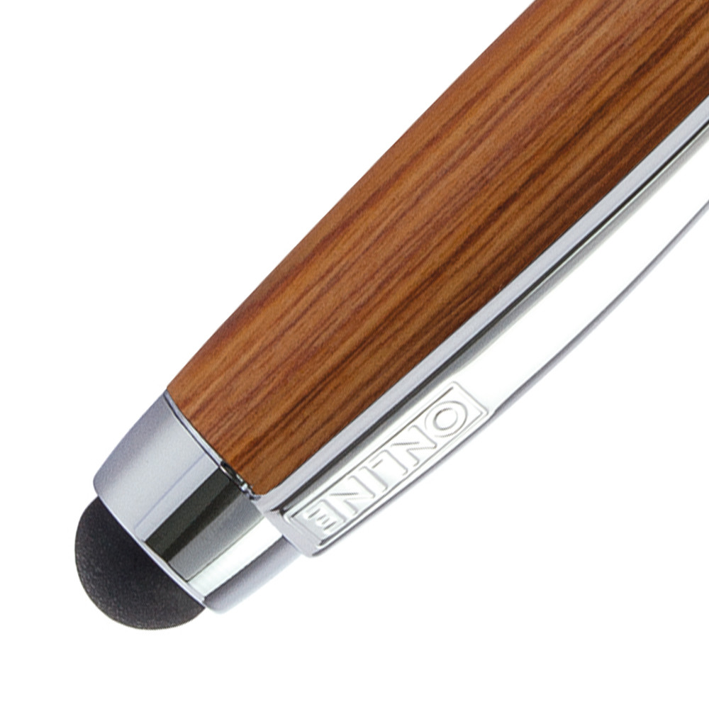 Design-Kugelschreiber Stylus, aus edlem Design-Holz, Metallclip und D1-Standardmine, Schreibfarbe Schwarz, Qualitäts-Stylus-Tip für Smartphones/Tablet PCs