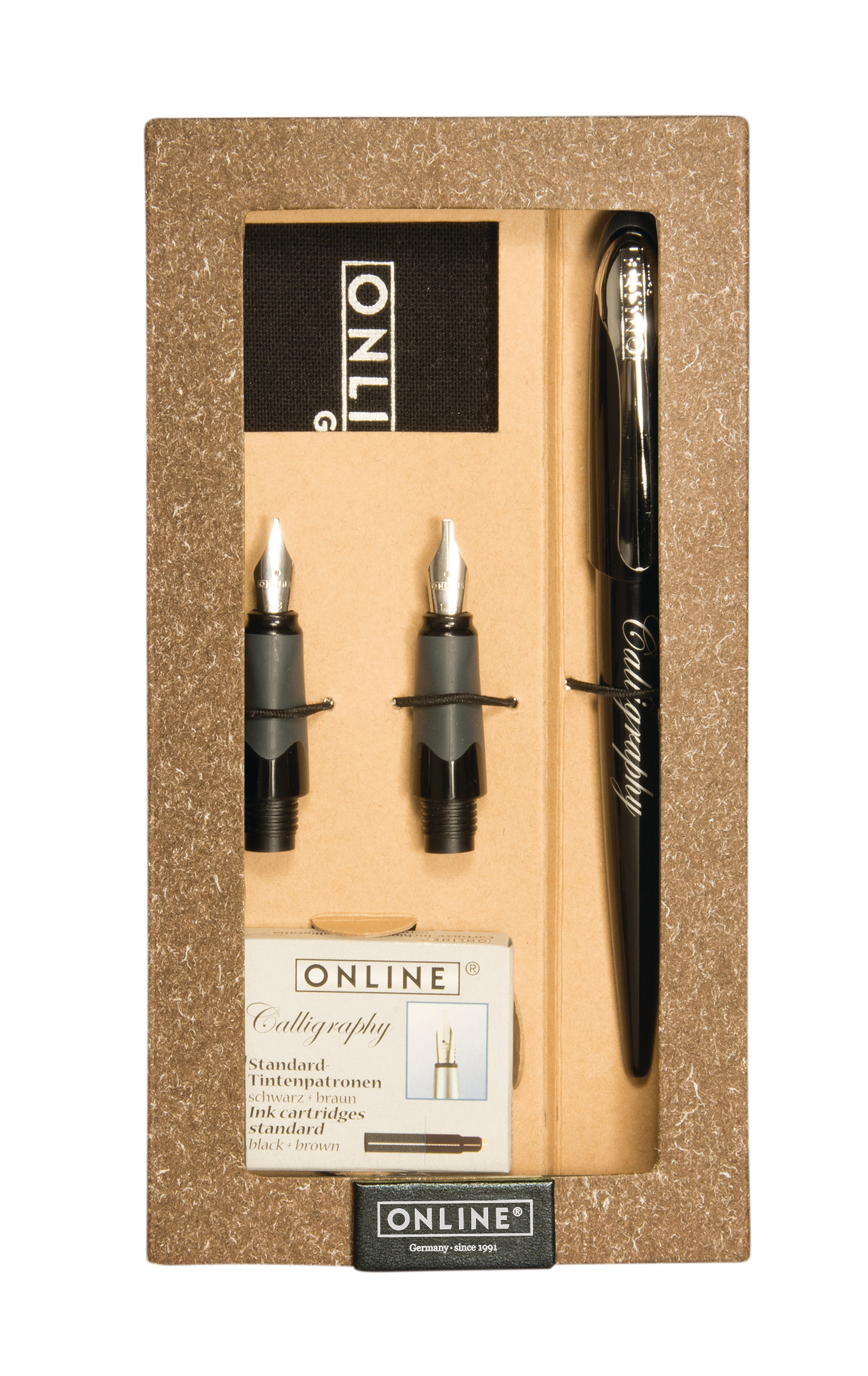 Set mit ONLINE AIR Kalligrafie, mit hochwertiger Kalligrafie-Feder in der Federstärke 1,4 mm, inklusive Konverter und 2 Tintengläser 15 ml (schwarz, braun) in der natürlichen Bamboo Box