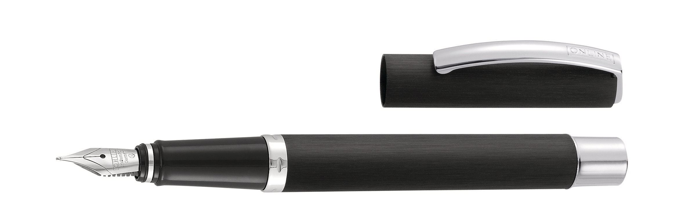 Design-Füllhalter aus gebürstetem Aluminium, für den gehobenen Schreibkomfort,hochwertige Iridium-Feder-handgefertigt in Deutschland, Acryl-Griffstück, Metallclip, Standardpatronen