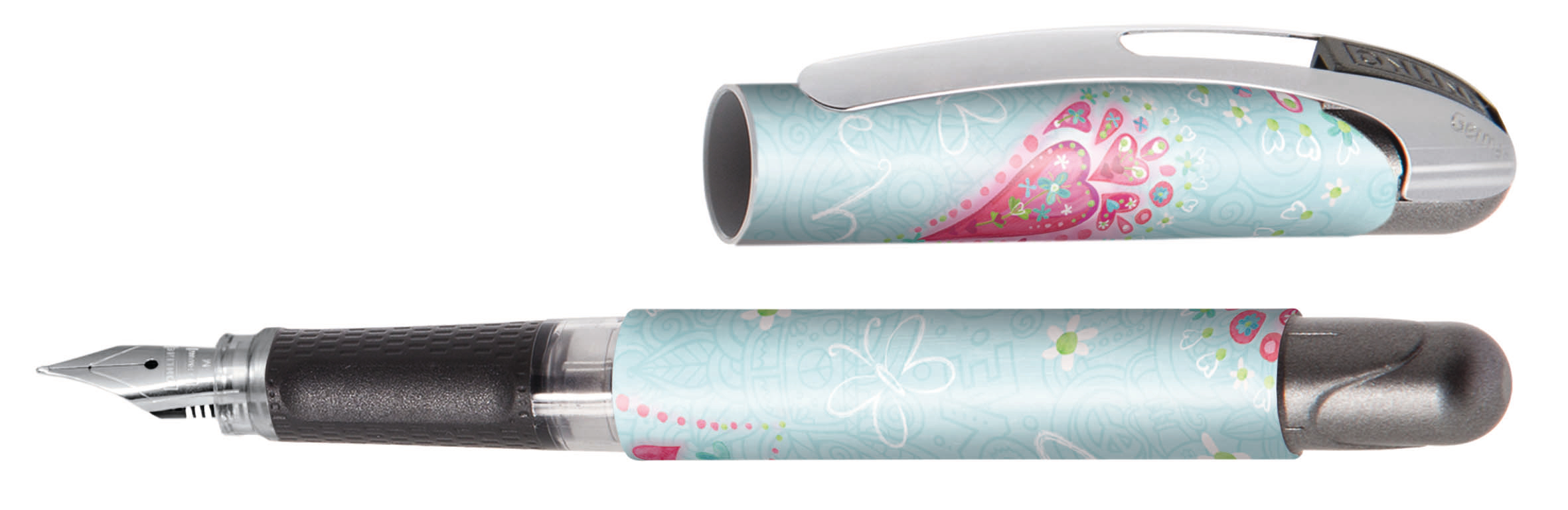Charming Designs – Beauties to write.Zauberhafte Farbspiele, Kreativität und jede Menge trendige Designs bietet die neue Linie College Charming. Cute Roses, Love Tunes usw. diese Designs sind einfach zum Verlieben.Das Kultschreibgerät für Schüler präsentiert sich in neuem Outfit. Der schlanke Schaft und die Top-Qualität bleiben weiterhin ein Markenzeichen, während die Kappe ein modernes Design mit hochwertig verchromtem Metall-Clip erhält. Der neue College Füllhalter überzeugt auch in redesignter Form auf Anhieb und ist mit hochwertigen Iridiumfedern in den Stärken M (mittel), F (fein) und EF (extra fein) – und speziell geschliffen – auch für Linkshänder erhältlich. Das Softtouch-Griffstück unterstützt die Ergonomie zusätzlich und ermöglicht so einen besonders entspannten und angenehmen Schreibkomfort. Nachfüllbar mit ONLINE-Kombipatronen oder Standard-Tintenpatronen. Stück für Stück geprüfte Qualität - Made in Germany.