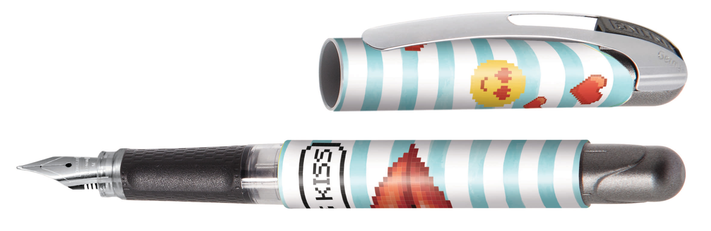 Trendiger Design-Füllhalter im neuen Outfit, in hochwertiger Qualität, edle Iridiumfeder M, Metallclip, ergonomisches Softtouch-Griffstück, für Kombipatronen und Standard-Tintenpatronen, Made in Germany.