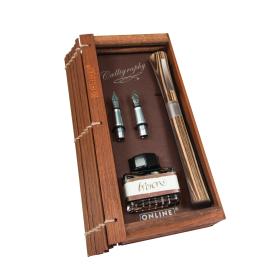 Design-Kalligrafie-Füllhalter, Wawa-Holz, Konverter, Geschenkset: 3 verschiedene Kalligrafie-Federstärken, Tintenglas, Bamboo-Geschenkbox, inkl. Griffstück 0,8 + 1,8 mm.