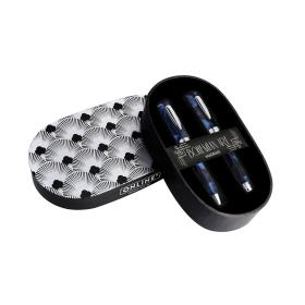 Füllhalter und Kugelschreiber aus semi-transparentem Acryl, in Midi-Grösse, hochwertig verarbeitet – ganz im Stil der Boheme, einer Stilrichtung, die vor allem Künstler in den 20er Jahren mit ihrer Lebensart geprägt haben. In dieser Zeit wurde auch Acryl als Werkstoff entdeckt, aus dem heute transparente Gegenstände in den verschiedensten Bereichen gefertigt werden. Die Schreibgeräte werden Stück für Stück von Hand gedrechselt. Die Metallteile sind in modischer Rosegold-Optik veredelt. Durch das interessante Acryl ist jedes Stück ein Original. Hochwertig verarbeitete Kappe mit Drehverschluss, auch zum Verlängern des Schafts. Die Geschenkbox passt exakt zum Boheme Stil und macht das Set zum perfekten Geschenk für alle Retro-Fans. Der Füllhalter ist nachfüllbar mit Standard Tintenpatronen, Gebrauch eines kurzen Konverters möglich. Auf die edle Iridium-Feder gewährt ONLINE 5 Jahre Garantie. Für den persönlichen Schreibkomfort leicht auswechselbare Federn durch „Easy-Change-System“.