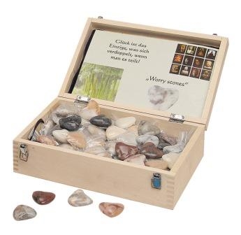 Marmorherzen in verschiedenen Naturfarben, 100 Stück im Holzdisplay