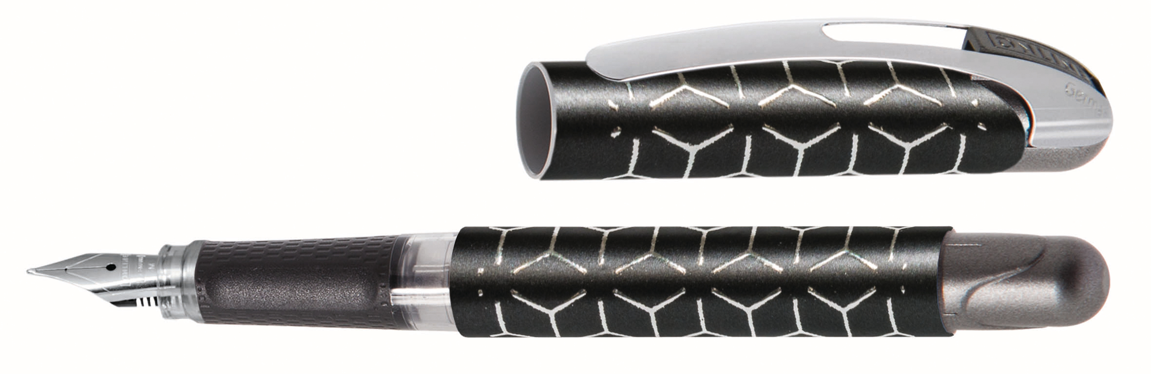 Trendiger Design-Füllhalter im neuen Outfit, in hochwertiger Qualität, edle Iridiumfeder M, Metallclip, ergonomisches Softtouch-Griffstück, für Kombipatronen und Standard-Tintenpatronen, Made in Germany.