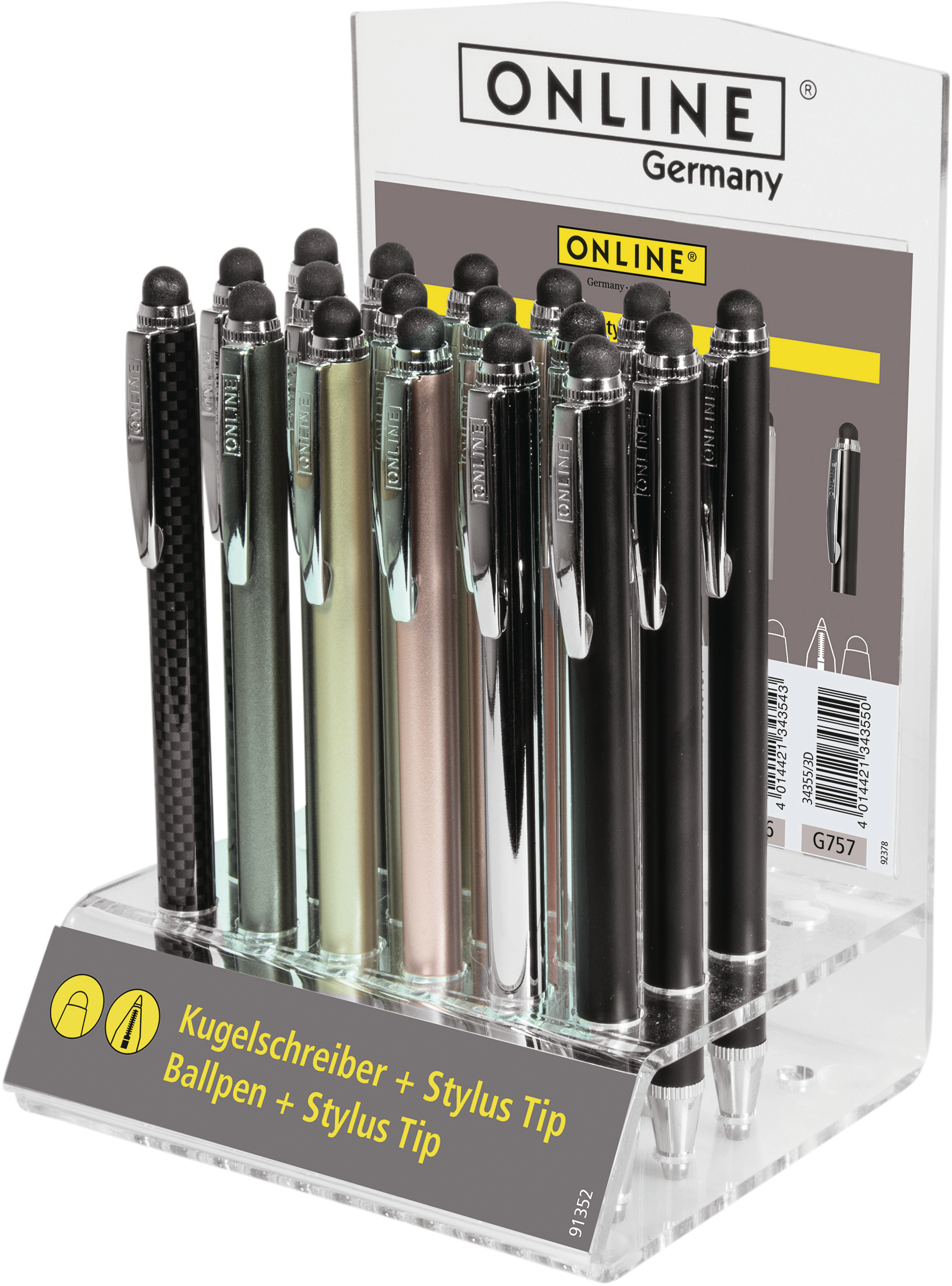 2 in 1 Touch Pen – der Metall-Kugelschreiber Stylus XL, mit hochwertigem Stylus-Tip in super softer Qualität. Metall-Kugelschreiber, mit Grossraummine, Schreibfarbe Blau