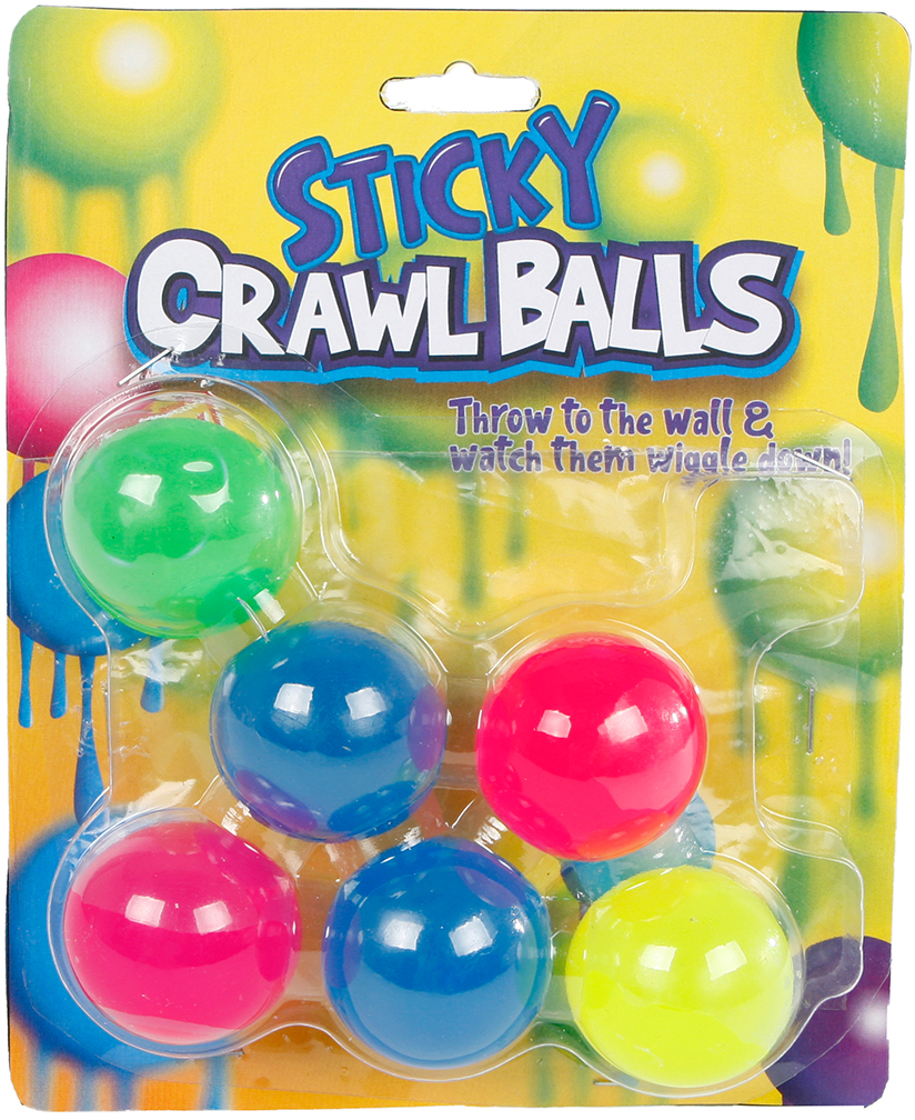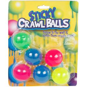 Werfen Sie die Sticky Klebebällchen gegen die Wand und schauen Sie zu wie sie die Wand herab schlängeln. Die Bälle haben einen Durchmesser von ca. 4 cm. 6 Stk. pro Blister.