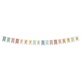 Bunter Wimpel mit der Aufschrift "Happy Birthday". Eine festliche und lustige Dekoration, die einen Raum aufwertet. Der perfekte Stimmungsaufheller für eine Geburtstagsparty. Er ist insgesamt 3,5 m lang und jede Buchstabenfahne ist 11x20 cm gross.