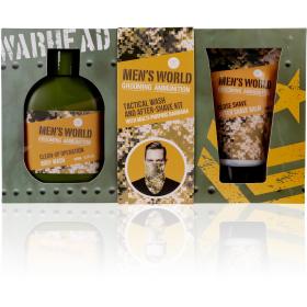 Badeset MEN'S WORLD in Geschenkbox, inkl. 200ml Body Wash, 75ml After Shave Balm, Halstuch/Gesichtsmaske mit Camouflage Print, Duft: Oak & Amber, Farbe: olive/ocker/orange, VE 6/24