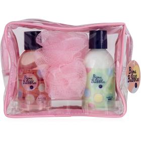 Badeset BIJOU BUBBLES in Kosmetiktasche, inkl. 150ml Duschgel, 150ml Bodylotion, 15g Netzschwamm, Duft: Vanilla Candy, Farbe: rosa/hellgrün/hellblau, VE 6/24