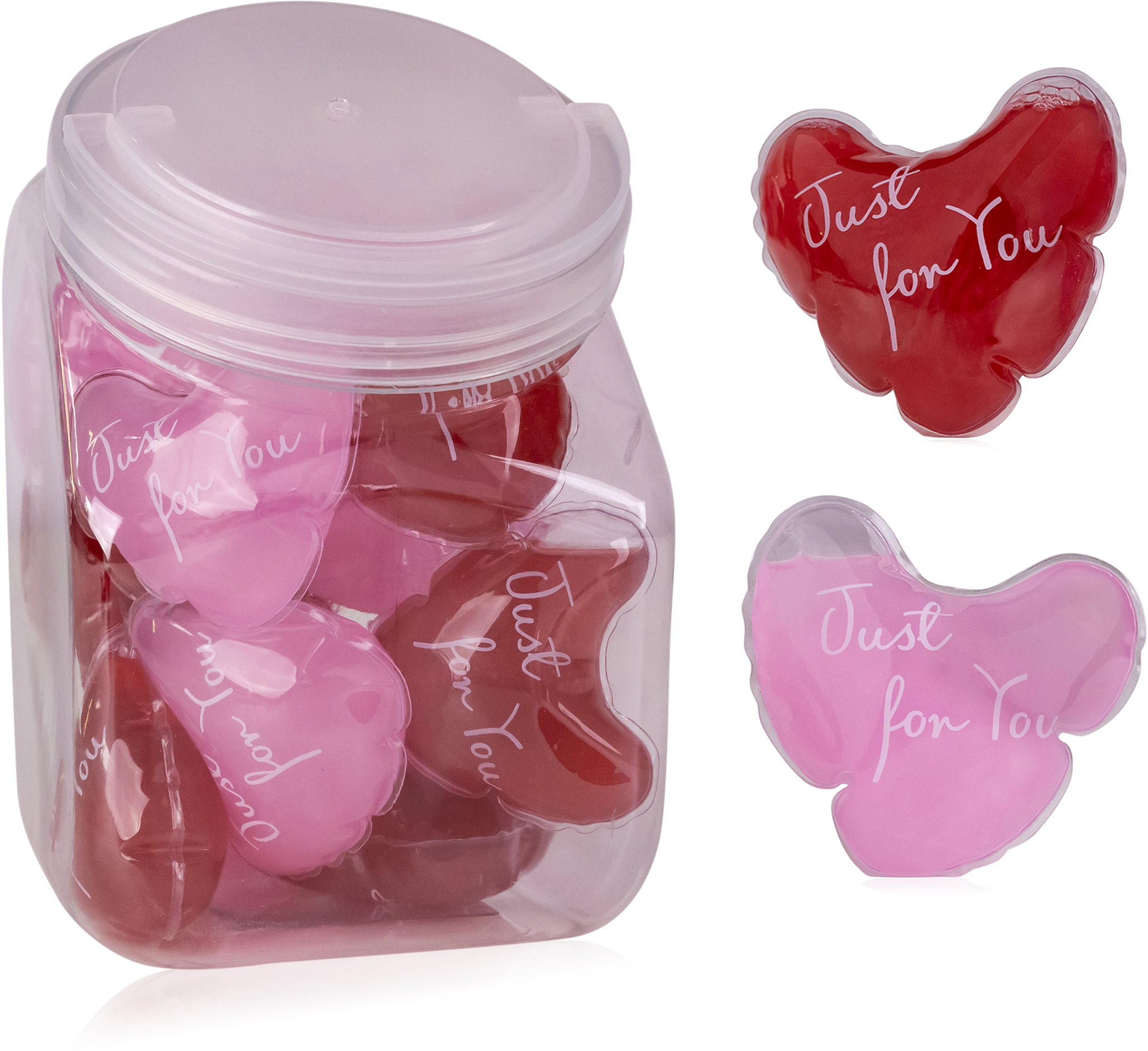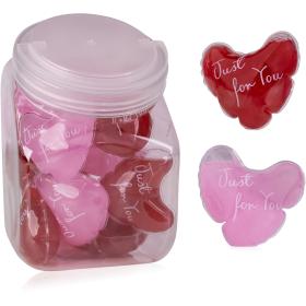 Mini-Duschgel JUST FOR YOU in Herzform, 2 Farben sortiert, 50ml, Duft: Erdbeere & Vanille, Farbe: pink/rot, VE 24 im Bonbonglas