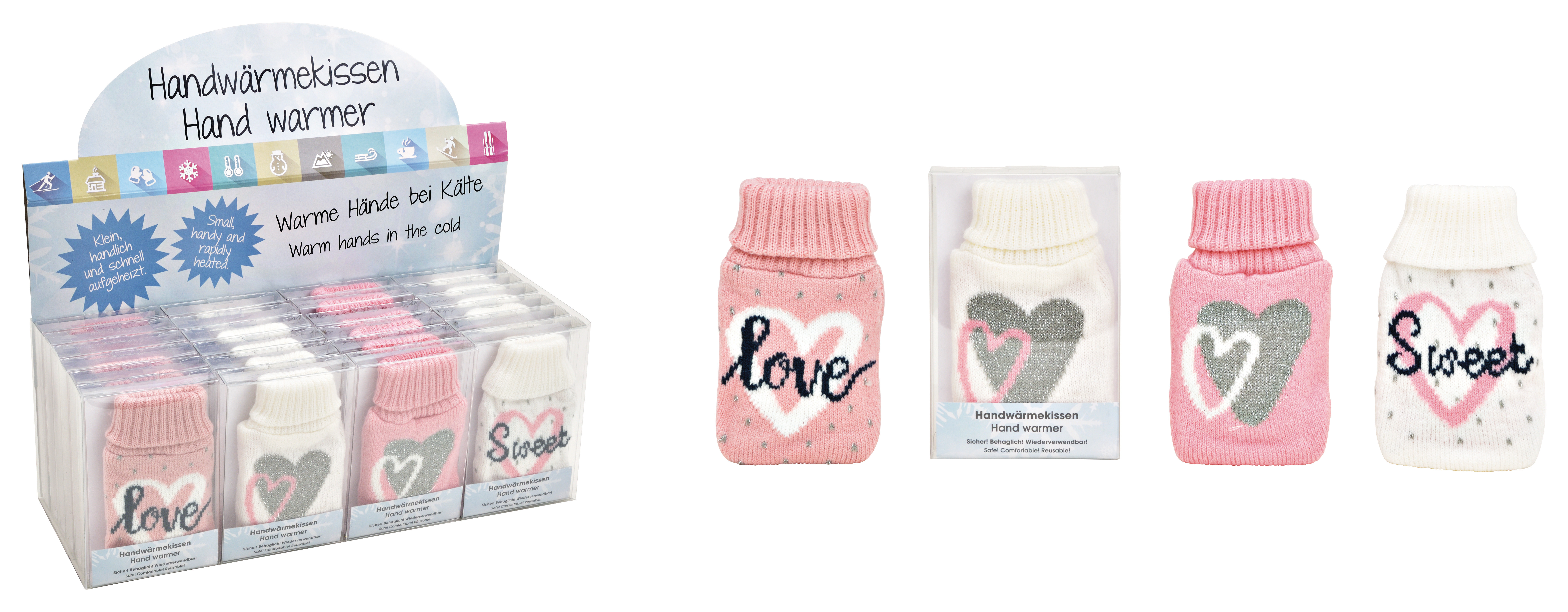 Nie mehr kalte Hände. Diese Handwärmer passen in jede Tasche. Verschiedene Motive und grössen runden die Auswahl ab.