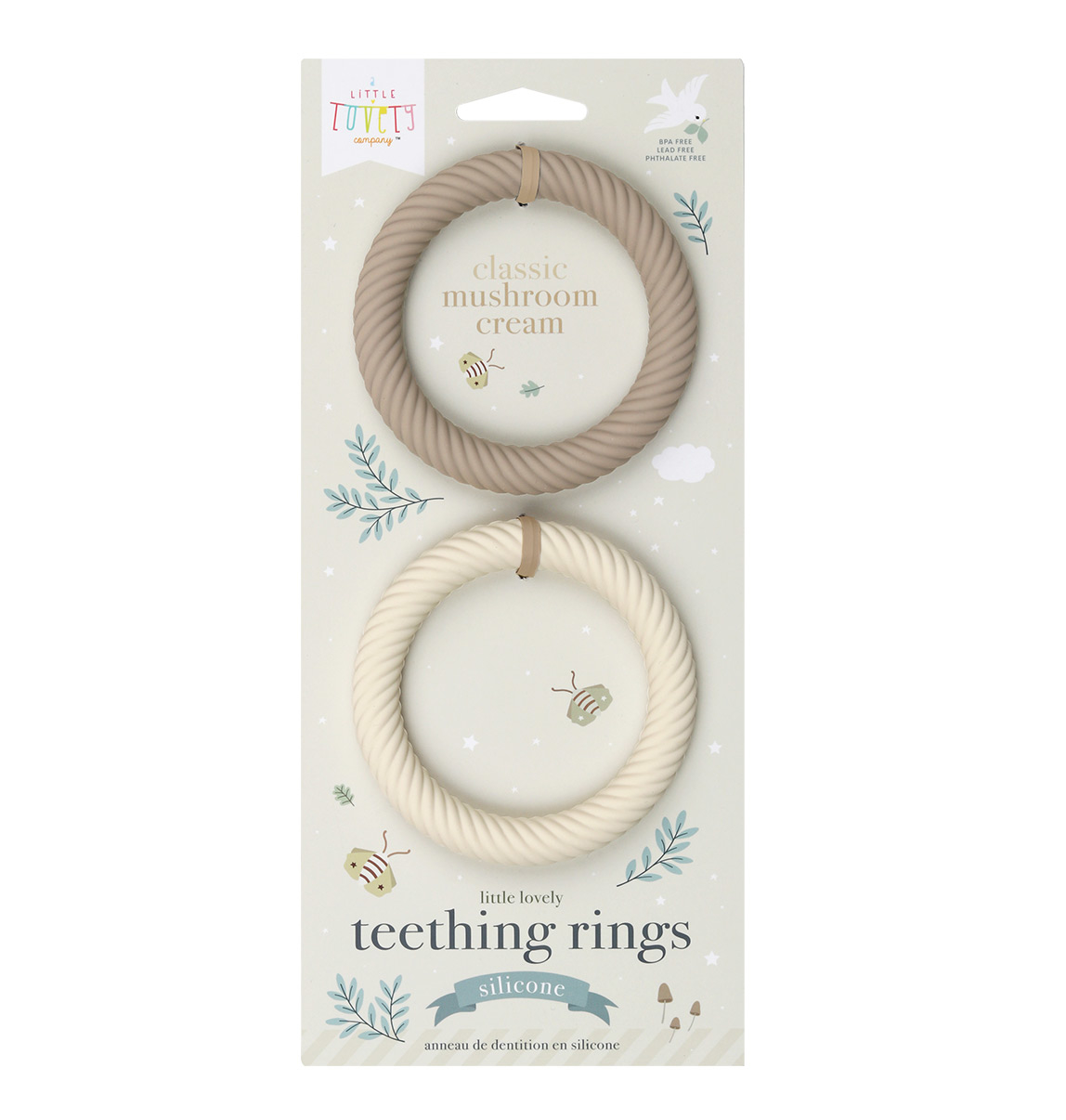 Set mit zwei niedlichen Beissringen. Die Beissringe aus 100 % Silikon haben die ideale Grösse für kleine Hände und lindern schmerzendes Zahnfleisch. Sie wurden mit viel Liebe zum Detail entworfen und entsprechen den Gesundheits- und Sicherheitsstandards. Die Beissringe aus Silikon enthalten keine schädlichen Stoffe wie PVC, BPA, Phthalaten oder Nitrosaminen.
