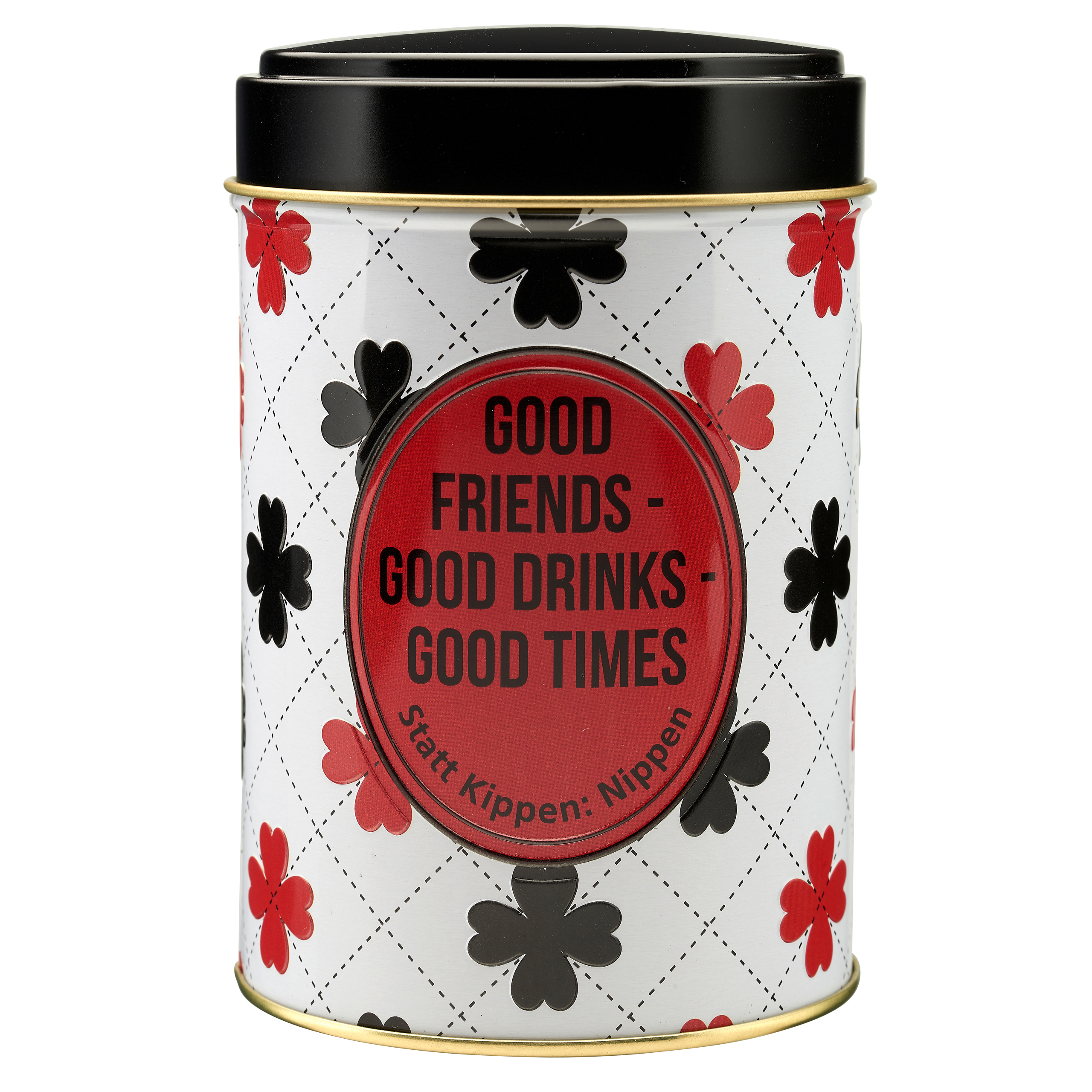 Die Teedose inklusive Früchtetee für alle besten Freunde, die dringend etwas Ruhe brauchen können. Kann später zur Sammeldose oder zum Freundschaftspokal umfunktioniert werden.