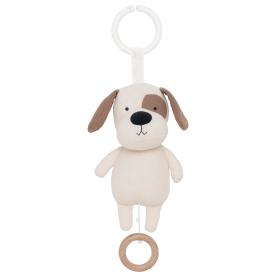 Cute musical shaped lika a puppy to hang in the pram. Allow your child to sleep with a soothing melody. To activate the musical function, pull the hanging wooden ring and the toy will play a lullaby. The musical box is easy to attach and works almost everywhere. Made of softest muslin and filling polyester fiber. Note that this baby product is not a toy. The musical should be maintained by an adult and mounted at a distance from the child's reach. The musical should not be used in a babysitter where the child can reach it.
