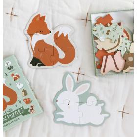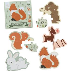 Set mit fünf Waldfreunde-Puzzles speziell für die Kleinen ab 2 Jahren. Jedes Waldfreunde-Puzzle besteht aus 3 bis 5 grossen Puzzleteilen. Die Puzzleteile sind aus dicker Karton gefertigt - ideal für kleine Hände. Eine super lustige Aktivität, die Ihr Kind lange beschäftigen wird und gleichzeitig sehr lehrreich ist. Das Puzzeln erfordert Aufmerksamkeit, Konzentration und Geduld und fördert ihre Mobilität und die Suche nach Möglichkeiten und Lösungen. Die Puzzles werden in einer hochwertigen Box geliefert und sind eine tolle Geschenkidee!