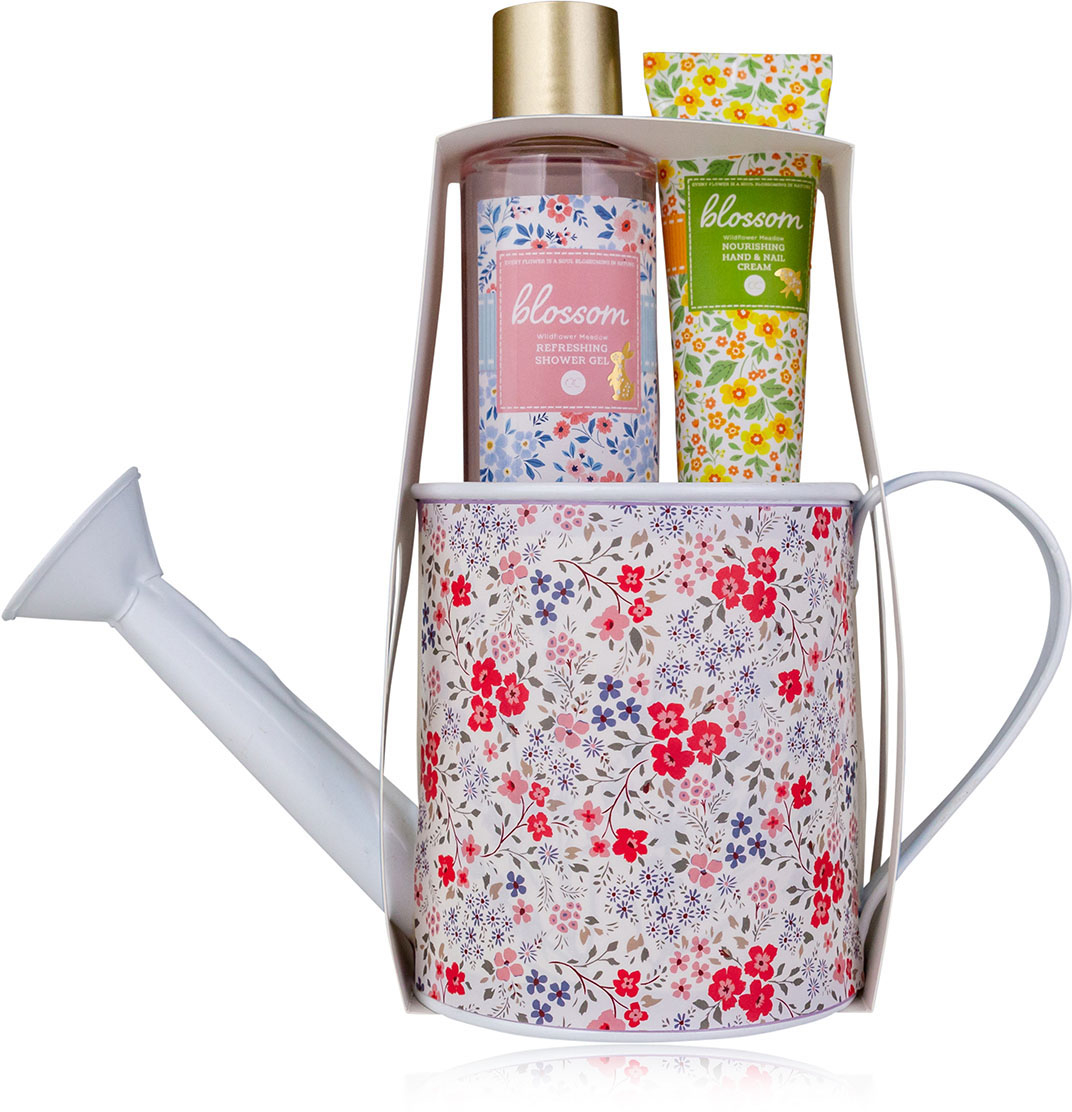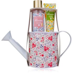 Badeset BLOSSOM in Giesskanne (ca. 300ml), inkl. 100ml Duschgel, 30ml Hand- & Nagelcreme, Duft: Wildflower Meadow, Farbe: weiss/rosa/blau, VE 6/12