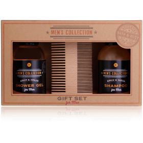 Geschenkset MEN'S COLLECTION in Geschenkbox aus Kraftpapier, inkl. 100ml Duschgel, 100ml Shampoo, Kamm aus Holz, Duft: Birke & Zeder, Farbe: braun, VE 6/12