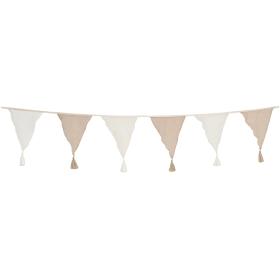 Textilwimpel aus recyceltem Textil mit 15 Wimpeln. Die Wimpel sind 15x24 cm mit der Quaste. Dieses Produkt ist vollständig oder grösstenteils aus Recyclingmaterial hergestellt und die Farbe der Textilien kann daher leicht variieren.