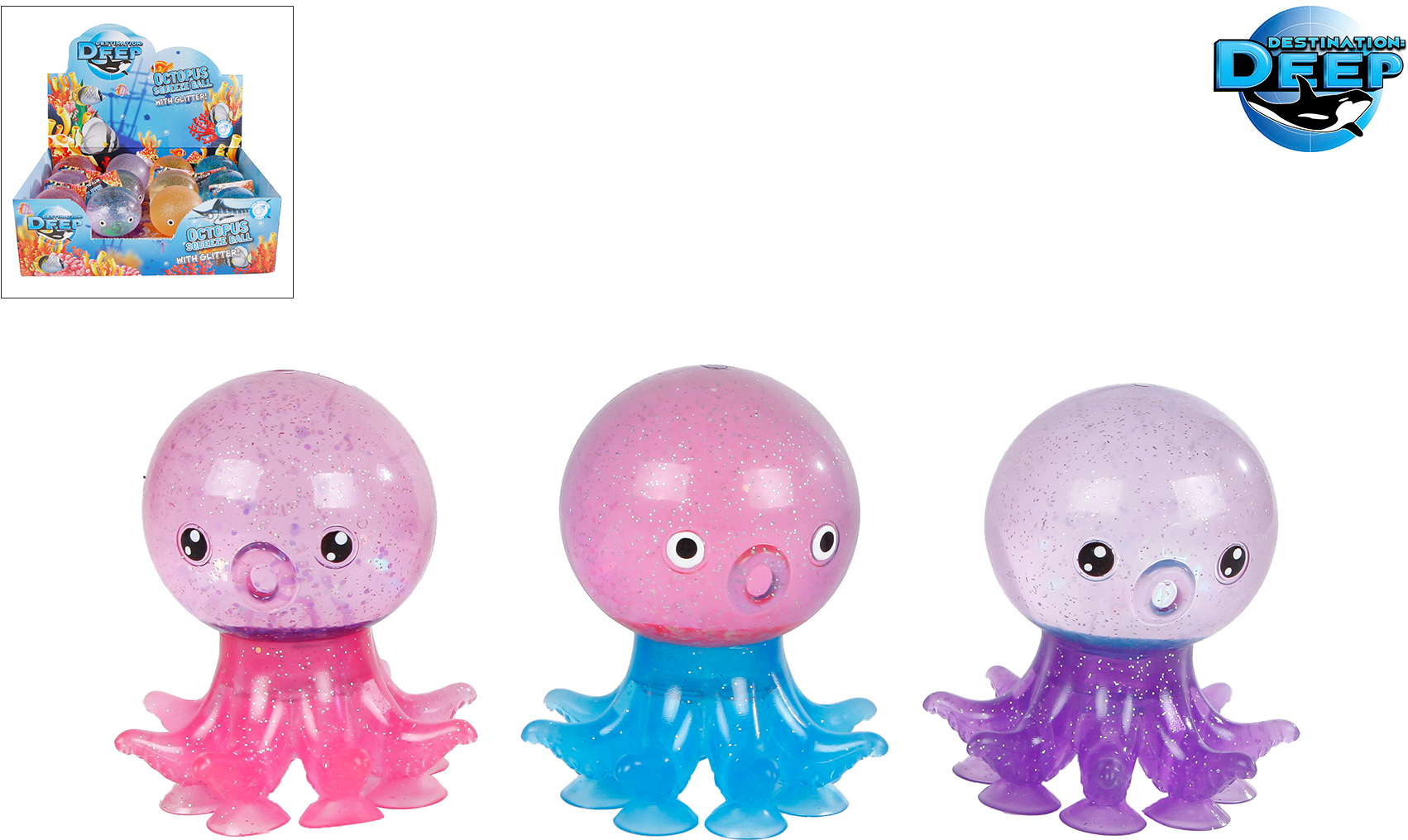 Destination Deep Octopus Glitzer-Squeeze-Ball mit Saugnäpfen
