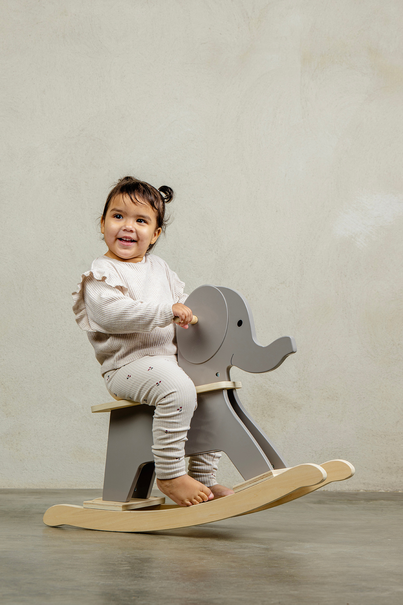 Ein charmantes Schaukelspielzeug aus Holz in Form eines Elefanten. Erleben Sie aufregende Abenteuer mit Ihrem neuen Begleiter. Es hat einen bequemen Sitz und zwei leicht zu greifende Griffe. Ein perfektes doppeltes Geschenk. Hergestellt aus FSC™-zertifiziertem Holz (FSC™C194598).