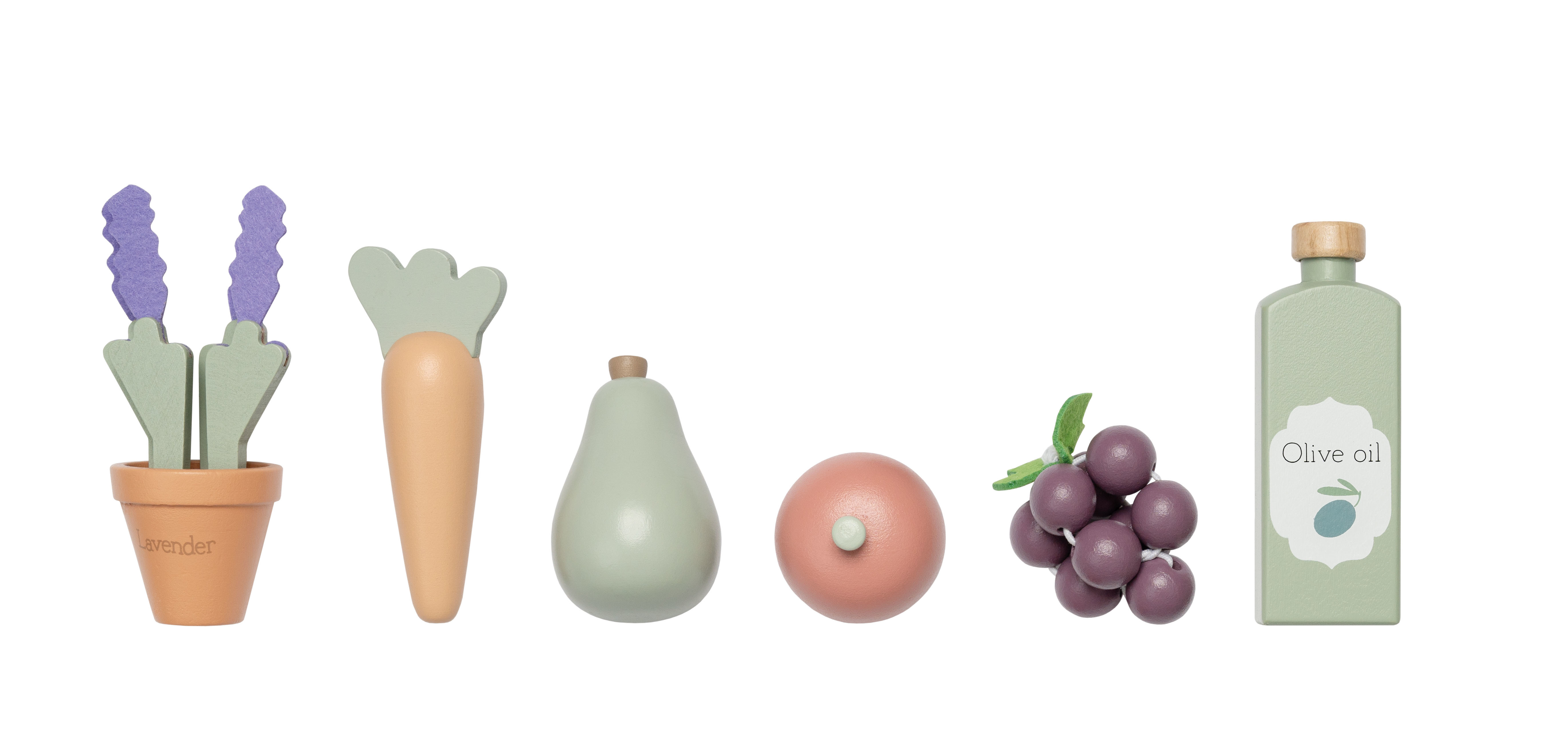 Eröffne deinen eigenen Marktstand! Mit Gemüse, Brot, Käse und vielem mehr aus Holz, ist es perfekt für kreative Rollenspiele. Die Kinder können das Verkaufen, Verpacken und Zählen üben und dabei unendlich viel Spass haben.