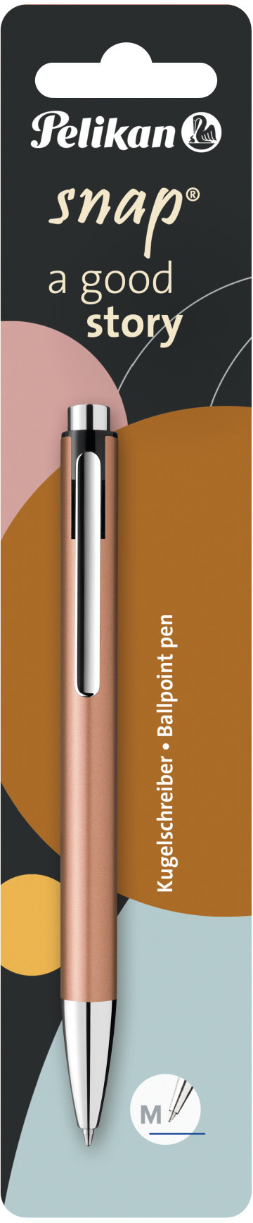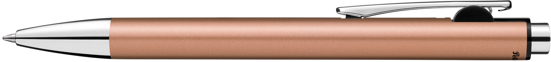 Metall-Kugelschreiber Snap mit Druck-Mechanismus. Klare, zylindrische Form aus Aluminium. Drücker, Clip und Messing-Spitze verchromt