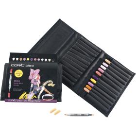 Copic Ciao 12er Set Witch im praktischen Wallet. Die Manga-Künstlerin Alexandra Kopetzky machte sich in der Manga-Szene durch diverse Auszeichnungen und Ausstellungen bereits einen Namen. Exklusiv für Copic entwickelte sie spannende Manga Themen-Sets in unterschiedlichen Konfigurationen. Die für die Labels benutzten Copic Ciao Marker sind in den jeweiligen Sets enthalten: E00, E21, YR16, V06, Y08, BV08, R22, R85, C3, V12, E31, 100.