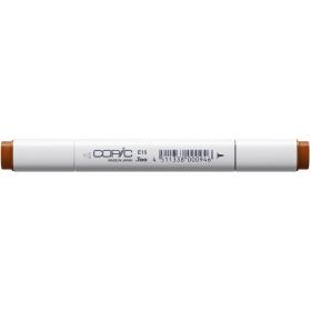 Copic Marker E15, Dark Suntan. Professioneller Copic Layoutmarker in 213 Farben (+ neutralem Blender), ausgestattet mit einer breiten und einer feinen Polyester-Spitze. Für unterschiedliche Anwendungen ist er ausserdem mit 7 weiteren Spitzen umrüstbar (inkl. Kalligrafie-Spitze). Der Copic Marker ist das ideale Handwerkszeug für professionelle Gestalter wie Grafiker, Architekten, Mode- und Industrie-Designer. Ideal für die Layout- & Entwurfstechnik, für Illustrationen, Scribbles & Storyboards, Stoffdesigns, Airbrush-Arbeiten, technische Zeichnungen, Kalligrafien etc. Das umfangreiche Copic Zubehör, das ständig erweitert und ergänzt wird, macht unterschiedliche Anwendungen möglich. Die Tinte des Copic Markers ist auf Alkoholbasis, toxikologisch unbedenklich und nahezu geruchlos. Sie trocknet schnell und verwischt nicht. Alle erhältlichen Farben (inklusive 44 Grautönen), können mit Copic Ink farbidentisch wieder aufgefüllt werden. Mit einer einzigen Copic Ink Nachfüllflasche kann der Marker 5 x nachgefüllt werden. Das garantiert ein optimales Kosten-Nutzen-Verhältnis, ist umweltfreundlich und wirtschaftlich.