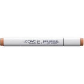Copic Marker E13, Light Suntan. Professioneller Copic Layoutmarker in 213 Farben (+ neutralem Blender), ausgestattet mit einer breiten und einer feinen Polyester-Spitze. Für unterschiedliche Anwendungen ist er ausserdem mit 7 weiteren Spitzen umrüstbar (inkl. Kalligrafie-Spitze). Der Copic Marker ist das ideale Handwerkszeug für professionelle Gestalter wie Grafiker, Architekten, Mode- und Industrie-Designer. Ideal für die Layout- & Entwurfstechnik, für Illustrationen, Scribbles & Storyboards, Stoffdesigns, Airbrush-Arbeiten, technische Zeichnungen, Kalligrafien etc. Das umfangreiche Copic Zubehör, das ständig erweitert und ergänzt wird, macht unterschiedliche Anwendungen möglich. Die Tinte des Copic Markers ist auf Alkoholbasis, toxikologisch unbedenklich und nahezu geruchlos. Sie trocknet schnell und verwischt nicht. Alle erhältlichen Farben (inklusive 44 Grautönen), können mit Copic Ink farbidentisch wieder aufgefüllt werden. Mit einer einzigen Copic Ink Nachfüllflasche kann der Marker 5 x nachgefüllt werden. Das garantiert ein optimales Kosten-Nutzen-Verhältnis, ist umweltfreundlich und wirtschaftlich.