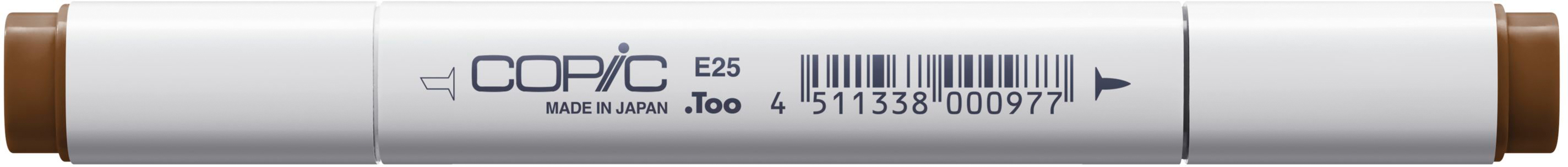 Copic Marker E25, Caribe Cococa. Professioneller Copic Layoutmarker in 213 Farben (+ neutralem Blender), ausgestattet mit einer breiten und einer feinen Polyester-Spitze. Für unterschiedliche Anwendungen ist er ausserdem mit 7 weiteren Spitzen umrüstbar (inkl. Kalligrafie-Spitze). Der Copic Marker ist das ideale Handwerkszeug für professionelle Gestalter wie Grafiker, Architekten, Mode- und Industrie-Designer. Ideal für die Layout- & Entwurfstechnik, für Illustrationen, Scribbles & Storyboards, Stoffdesigns, Airbrush-Arbeiten, technische Zeichnungen, Kalligrafien etc. Das umfangreiche Copic Zubehör, das ständig erweitert und ergänzt wird, macht unterschiedliche Anwendungen möglich. Die Tinte des Copic Markers ist auf Alkoholbasis, toxikologisch unbedenklich und nahezu geruchlos. Sie trocknet schnell und verwischt nicht. Alle erhältlichen Farben (inklusive 44 Grautönen), können mit Copic Ink farbidentisch wieder aufgefüllt werden. Mit einer einzigen Copic Ink Nachfüllflasche kann der Marker 5 x nachgefüllt werden. Das garantiert ein optimales Kosten-Nutzen-Verhältnis, ist umweltfreundlich und wirtschaftlich.