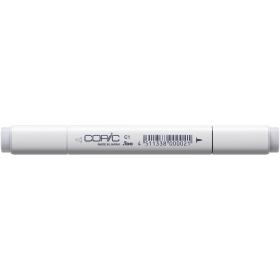 Copic Marker C1, Cool Grey. Professioneller Copic Layoutmarker in 213 Farben (+ neutralem Blender), ausgestattet mit einer breiten und einer feinen Polyester-Spitze. Für unterschiedliche Anwendungen ist er ausserdem mit 7 weiteren Spitzen umrüstbar (inkl. Kalligrafie-Spitze). Der Copic Marker ist das ideale Handwerkszeug für professionelle Gestalter wie Grafiker, Architekten, Mode- und Industrie-Designer. Ideal für die Layout- & Entwurfstechnik, für Illustrationen, Scribbles & Storyboards, Stoffdesigns, Airbrush-Arbeiten, technische Zeichnungen, Kalligrafien etc. Das umfangreiche Copic Zubehör, das ständig erweitert und ergänzt wird, macht unterschiedliche Anwendungen möglich. Die Tinte des Copic Markers ist auf Alkoholbasis, toxikologisch unbedenklich und nahezu geruchlos. Sie trocknet schnell und verwischt nicht. Alle erhältlichen Farben (inklusive 44 Grautönen), können mit Copic Ink farbidentisch wieder aufgefüllt werden. Mit einer einzigen Copic Ink Nachfüllflasche kann der Marker 5 x nachgefüllt werden. Das garantiert ein optimales Kosten-Nutzen-Verhältnis, ist umweltfreundlich und wirtschaftlich.