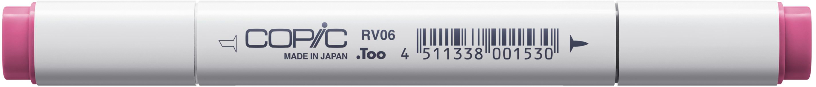 Copic Marker RV06, Cerise. Professioneller Copic Layoutmarker in 213 Farben (+ neutralem Blender), ausgestattet mit einer breiten und einer feinen Polyester-Spitze. Für unterschiedliche Anwendungen ist er ausserdem mit 7 weiteren Spitzen umrüstbar (inkl. Kalligrafie-Spitze). Der Copic Marker ist das ideale Handwerkszeug für professionelle Gestalter wie Grafiker, Architekten, Mode- und Industrie-Designer. Ideal für die Layout- & Entwurfstechnik, für Illustrationen, Scribbles & Storyboards, Stoffdesigns, Airbrush-Arbeiten, technische Zeichnungen, Kalligrafien etc. Das umfangreiche Copic Zubehör, das ständig erweitert und ergänzt wird, macht unterschiedliche Anwendungen möglich. Die Tinte des Copic Markers ist auf Alkoholbasis, toxikologisch unbedenklich und nahezu geruchlos. Sie trocknet schnell und verwischt nicht. Alle erhältlichen Farben (inklusive 44 Grautönen), können mit Copic Ink farbidentisch wieder aufgefüllt werden. Mit einer einzigen Copic Ink Nachfüllflasche kann der Marker 5 x nachgefüllt werden. Das garantiert ein optimales Kosten-Nutzen-Verhältnis, ist umweltfreundlich und wirtschaftlich.