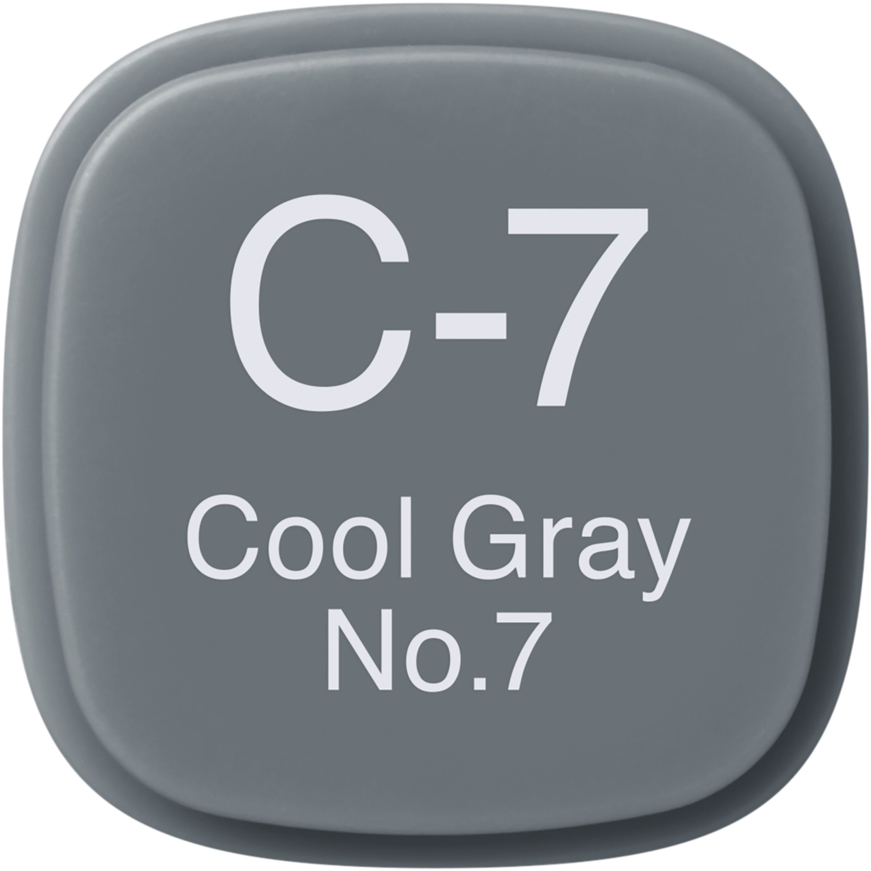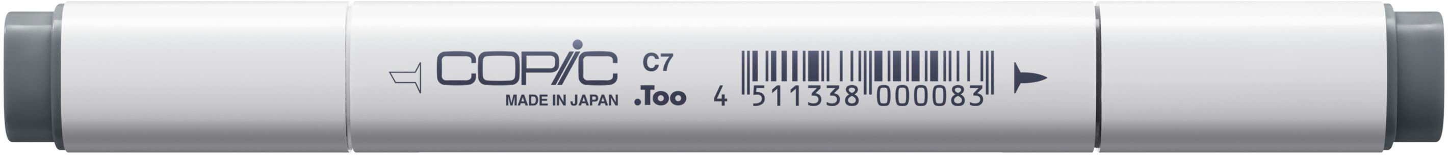 Copic Marker C7, Cool Grey. Professioneller Copic Layoutmarker in 213 Farben (+ neutralem Blender), ausgestattet mit einer breiten und einer feinen Polyester-Spitze. Für unterschiedliche Anwendungen ist er ausserdem mit 7 weiteren Spitzen umrüstbar (inkl. Kalligrafie-Spitze). Der Copic Marker ist das ideale Handwerkszeug für professionelle Gestalter wie Grafiker, Architekten, Mode- und Industrie-Designer. Ideal für die Layout- & Entwurfstechnik, für Illustrationen, Scribbles & Storyboards, Stoffdesigns, Airbrush-Arbeiten, technische Zeichnungen, Kalligrafien etc. Das umfangreiche Copic Zubehör, das ständig erweitert und ergänzt wird, macht unterschiedliche Anwendungen möglich. Die Tinte des Copic Markers ist auf Alkoholbasis, toxikologisch unbedenklich und nahezu geruchlos. Sie trocknet schnell und verwischt nicht. Alle erhältlichen Farben (inklusive 44 Grautönen), können mit Copic Ink farbidentisch wieder aufgefüllt werden. Mit einer einzigen Copic Ink Nachfüllflasche kann der Marker 5 x nachgefüllt werden. Das garantiert ein optimales Kosten-Nutzen-Verhältnis, ist umweltfreundlich und wirtschaftlich.