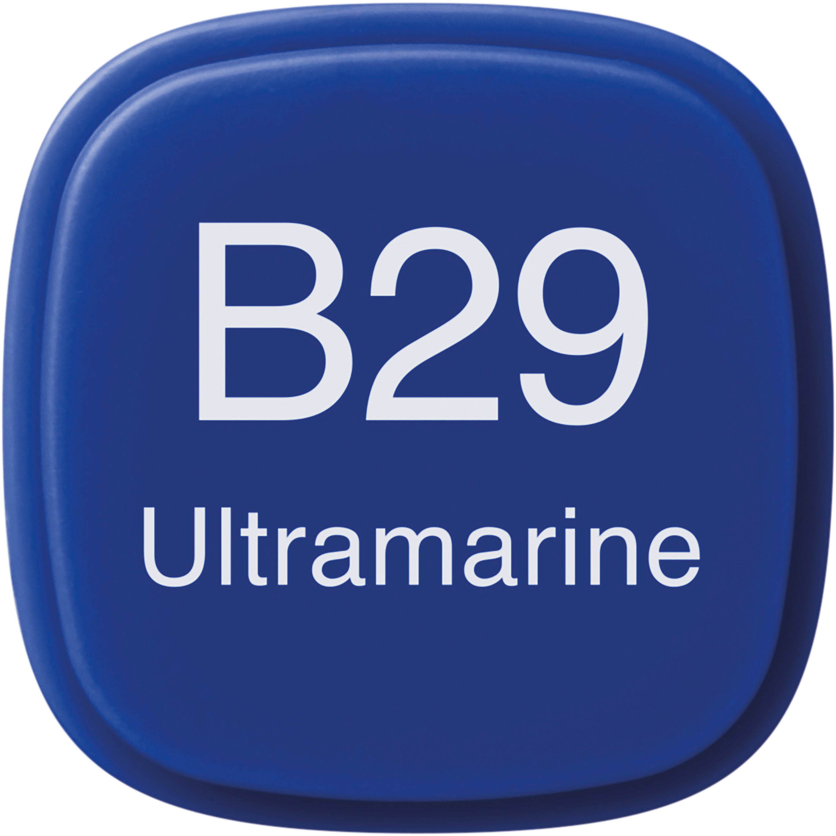 Copic Marker B29, Ultramarine. Professioneller Copic Layoutmarker in 213 Farben (+ neutralem Blender), ausgestattet mit einer breiten und einer feinen Polyester-Spitze. Für unterschiedliche Anwendungen ist er ausserdem mit 7 weiteren Spitzen umrüstbar (inkl. Kalligrafie-Spitze). Der Copic Marker ist das ideale Handwerkszeug für professionelle Gestalter wie Grafiker, Architekten, Mode- und Industrie-Designer. Ideal für die Layout- & Entwurfstechnik, für Illustrationen, Scribbles & Storyboards, Stoffdesigns, Airbrush-Arbeiten, technische Zeichnungen, Kalligrafien etc. Das umfangreiche Copic Zubehör, das ständig erweitert und ergänzt wird, macht unterschiedliche Anwendungen möglich. Die Tinte des Copic Markers ist auf Alkoholbasis, toxikologisch unbedenklich und nahezu geruchlos. Sie trocknet schnell und verwischt nicht. Alle erhältlichen Farben (inklusive 44 Grautönen), können mit Copic Ink farbidentisch wieder aufgefüllt werden. Mit einer einzigen Copic Ink Nachfüllflasche kann der Marker 5 x nachgefüllt werden. Das garantiert ein optimales Kosten-Nutzen-Verhältnis, ist umweltfreundlich und wirtschaftlich.