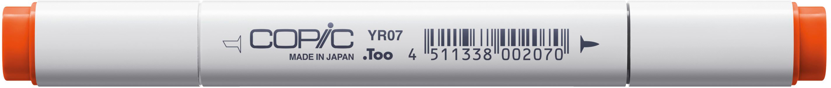 Copic Marker YR07, Cadmium Orange. Professioneller Copic Layoutmarker in 213 Farben (+ neutralem Blender), ausgestattet mit einer breiten und einer feinen Polyester-Spitze. Für unterschiedliche Anwendungen ist er ausserdem mit 7 weiteren Spitzen umrüstbar (inkl. Kalligrafie-Spitze). Der Copic Marker ist das ideale Handwerkszeug für professionelle Gestalter wie Grafiker, Architekten, Mode- und Industrie-Designer. Ideal für die Layout- & Entwurfstechnik, für Illustrationen, Scribbles & Storyboards, Stoffdesigns, Airbrush-Arbeiten, technische Zeichnungen, Kalligrafien etc. Das umfangreiche Copic Zubehör, das ständig erweitert und ergänzt wird, macht unterschiedliche Anwendungen möglich. Die Tinte des Copic Markers ist auf Alkoholbasis, toxikologisch unbedenklich und nahezu geruchlos. Sie trocknet schnell und verwischt nicht. Alle erhältlichen Farben (inklusive 44 Grautönen), können mit Copic Ink farbidentisch wieder aufgefüllt werden. Mit einer einzigen Copic Ink Nachfüllflasche kann der Marker 5 x nachgefüllt werden. Das garantiert ein optimales Kosten-Nutzen-Verhältnis, ist umweltfreundlich und wirtschaftlich.