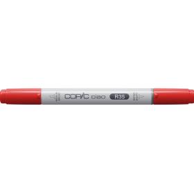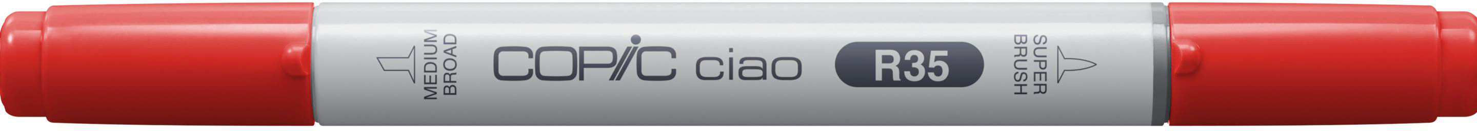 Copic Ciao Marker R35, der preisgünstige, doppelseitige Allround-Marker in 180 Farben. Der Copic Ciao bietet Newcomern viele Produktvorteile, die bereits den Copic classic und den Copic Sketch aus dem Profilager ausgezeichnet haben. Ausgestattet mit einer universell einsetzbaren, mittelbreiten Spitze, verfügt er ausserdem über eine flexible Pinselspitze. Mit dieser können weiche Striche mit interessanten Modulationen erzielt werden. Der Ciao Marker ist daher für Modedesign und Kalligrafie, zum Skizzieren, Scribblen und Layouten perfekt einsetzbar. Insbesondere Hobbykünstler & Mangaka bevorzugen den Copic Ciao, u.a. zum Kolorieren von Scrapbookings, Stempelkunst und handgemachten Karten. Die eingefärbten Kappen ermöglichen eine schnelle und exakte Identifizierung der Farbtöne. Die 180 leuchtenden Farben auf Alkoholbasis sind toxikologisch unbedenklich und nahezu geruchlos. Die Tinte trocknet schnell, verwischt nicht und kann auf der Fläche gemischt und übereinandergelegt werden. Alle erhältlichen 180 Farben können mit Copic Ink farbidentisch wieder aufgefüllt werden. Mit einer einzigen Nachfüll-Flasche kann der Marker 9 x wieder aufgefüllt werden. Das garantiert ein optimales Kosten-Nutzen-Verhältnis, ist umweltfreundlich und wirtschaftlich.