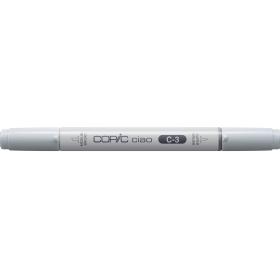 Copic Ciao Marker C3, der preisgünstige, doppelseitige Allround-Marker in 180 Farben. Der Copic Ciao bietet Newcomern viele Produktvorteile, die bereits den Copic classic und den Copic Sketch aus dem Profilager ausgezeichnet haben. Ausgestattet mit einer universell einsetzbaren, mittelbreiten Spitze, verfügt er ausserdem über eine flexible Pinselspitze. Mit dieser können weiche Striche mit interessanten Modulationen erzielt werden. Der Ciao Marker ist daher für Modedesign und Kalligrafie, zum Skizzieren, Scribblen und Layouten perfekt einsetzbar. Insbesondere Hobbykünstler & Mangaka bevorzugen den Copic Ciao, u.a. zum Kolorieren von Scrapbookings, Stempelkunst und handgemachten Karten. Die eingefärbten Kappen ermöglichen eine schnelle und exakte Identifizierung der Farbtöne. Die 180 leuchtenden Farben auf Alkoholbasis sind toxikologisch unbedenklich und nahezu geruchlos. Die Tinte trocknet schnell, verwischt nicht und kann auf der Fläche gemischt und übereinandergelegt werden. Alle erhältlichen 180 Farben können mit Copic Ink farbidentisch wieder aufgefüllt werden. Mit einer einzigen Nachfüll-Flasche kann der Marker 9 x wieder aufgefüllt werden. Das garantiert ein optimales Kosten-Nutzen-Verhältnis, ist umweltfreundlich und wirtschaftlich.