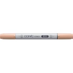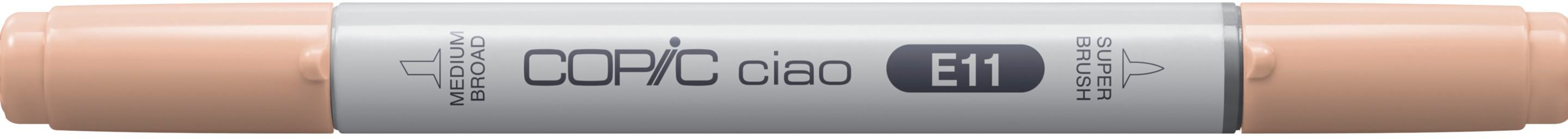 Copic Ciao Marker E11, der preisgünstige, doppelseitige Allround-Marker in 180 Farben. Der Copic Ciao bietet Newcomern viele Produktvorteile, die bereits den Copic classic und den Copic Sketch aus dem Profilager ausgezeichnet haben. Ausgestattet mit einer universell einsetzbaren, mittelbreiten Spitze, verfügt er ausserdem über eine flexible Pinselspitze. Mit dieser können weiche Striche mit interessanten Modulationen erzielt werden. Der Ciao Marker ist daher für Modedesign und Kalligrafie, zum Skizzieren, Scribblen und Layouten perfekt einsetzbar. Insbesondere Hobbykünstler & Mangaka bevorzugen den Copic Ciao, u.a. zum Kolorieren von Scrapbookings, Stempelkunst und handgemachten Karten. Die eingefärbten Kappen ermöglichen eine schnelle und exakte Identifizierung der Farbtöne. Die 180 leuchtenden Farben auf Alkoholbasis sind toxikologisch unbedenklich und nahezu geruchlos. Die Tinte trocknet schnell, verwischt nicht und kann auf der Fläche gemischt und übereinandergelegt werden. Alle erhältlichen 180 Farben können mit Copic Ink farbidentisch wieder aufgefüllt werden. Mit einer einzigen Nachfüll-Flasche kann der Marker 9 x wieder aufgefüllt werden. Das garantiert ein optimales Kosten-Nutzen-Verhältnis, ist umweltfreundlich und wirtschaftlich.